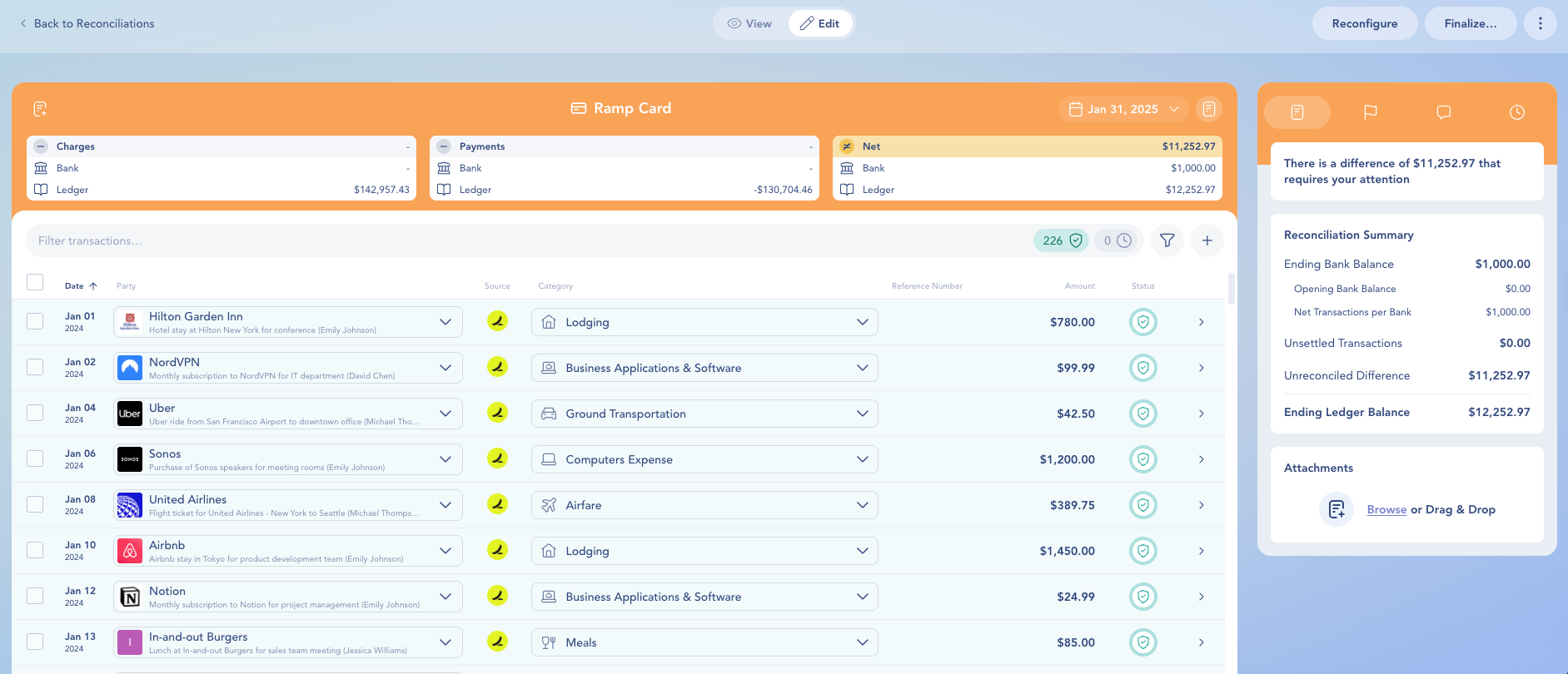 Once you’ve started a reconciliation, you’ll land on a detailed view like the one below: